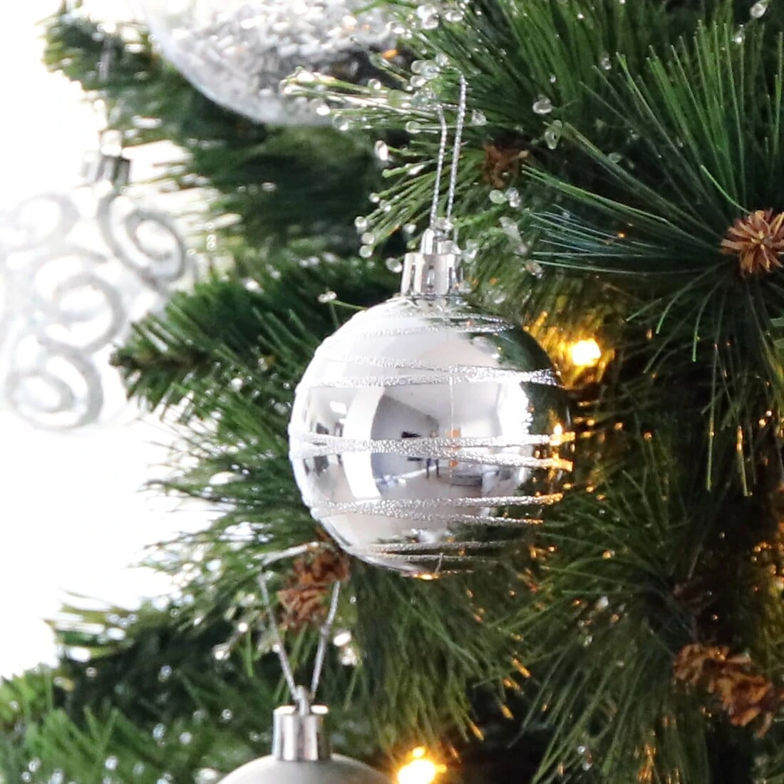 These stunning swirl patterned baubles are perfect for adding some sparkle to your tree this Christmas. Each bauble featured a shiny mirrored finish with a textured 3D swirl and hanging loop attached.