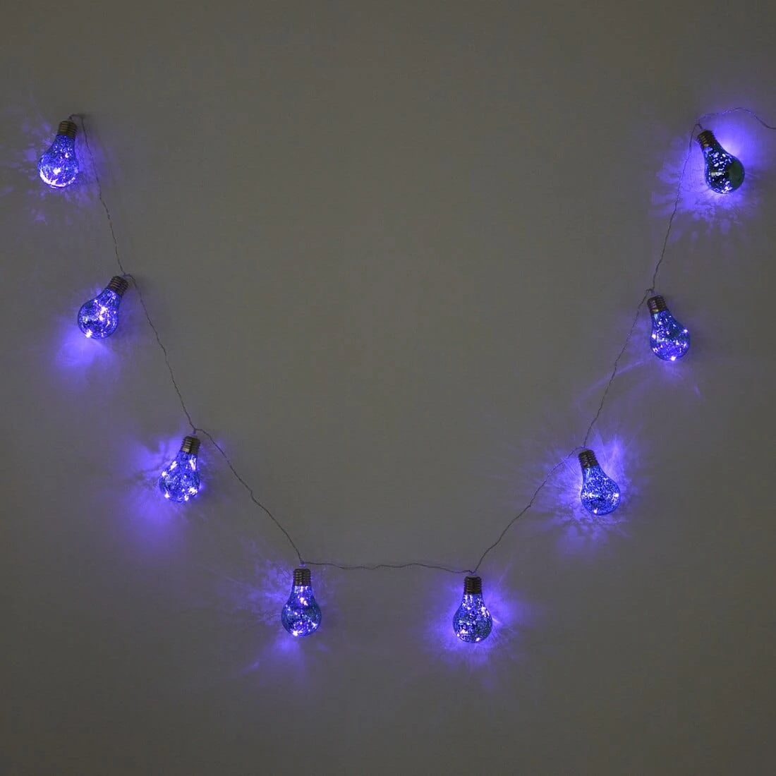 Each set contains 8 classic lightbulb shaped baubles finished with speckled coloured glass and 24 brightly coloured LED lights in total. The garlands are approximately 175cm/69″ long and are battery operated – ideal for moving from room to room and hanging on display anywhere indoors! Can be used outdoors only when the weather is dry.