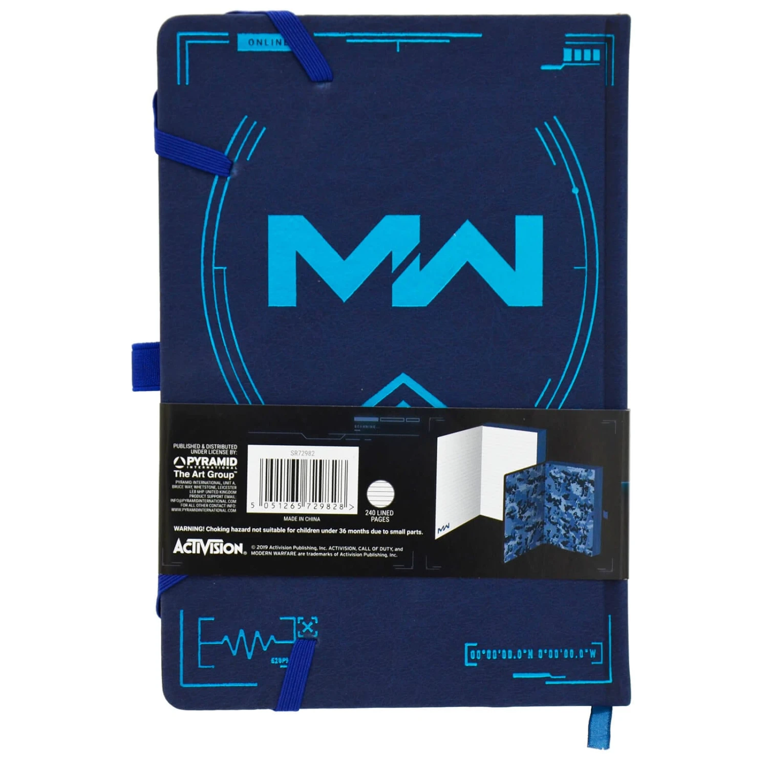 The COD Modern Warfare Notebook has 240 lined pages, with ribbon page marker, 2 corner elastic band closers and a pen holder loop. The inside back cover comes with a handy pocket for storing documents and more. A great gift idea for fans of the video game