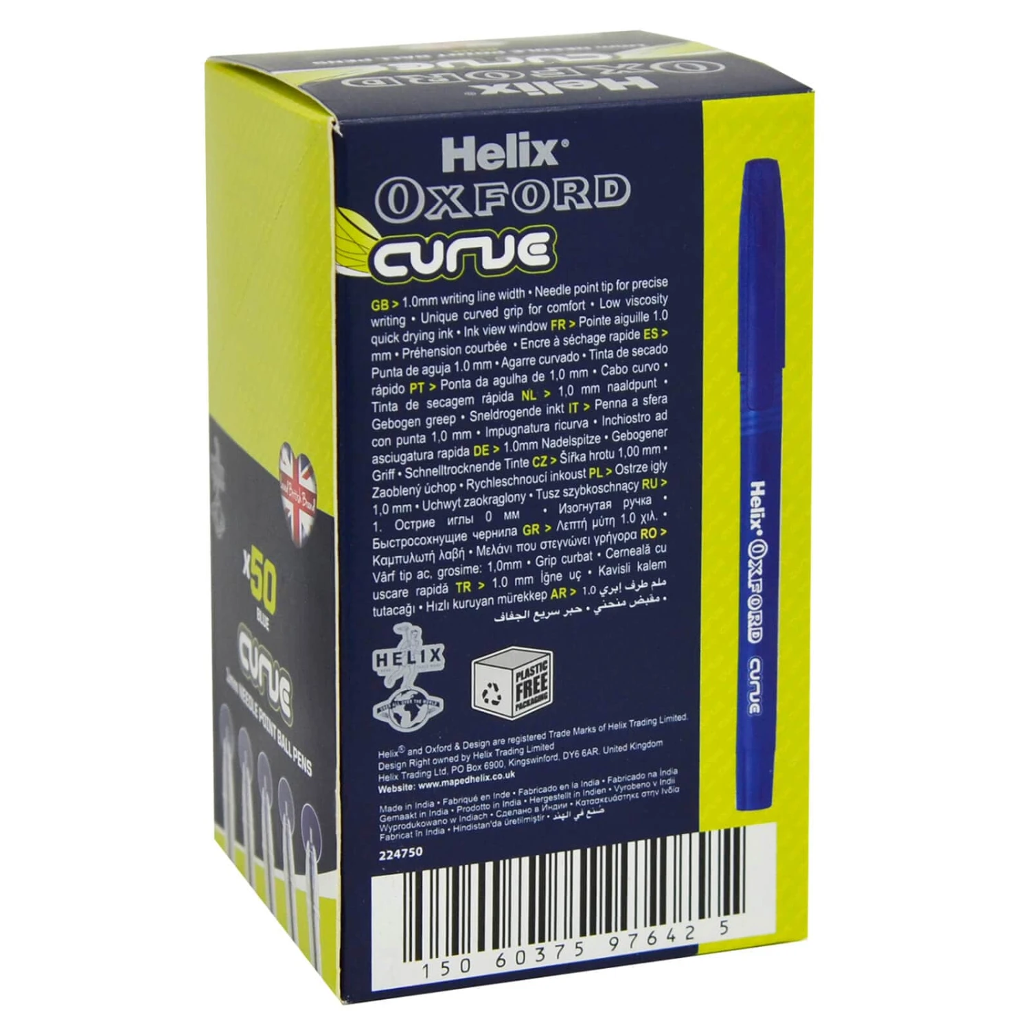 Box Of 50 Ball Pens Helix Oxford Curve 1mm Needle Point