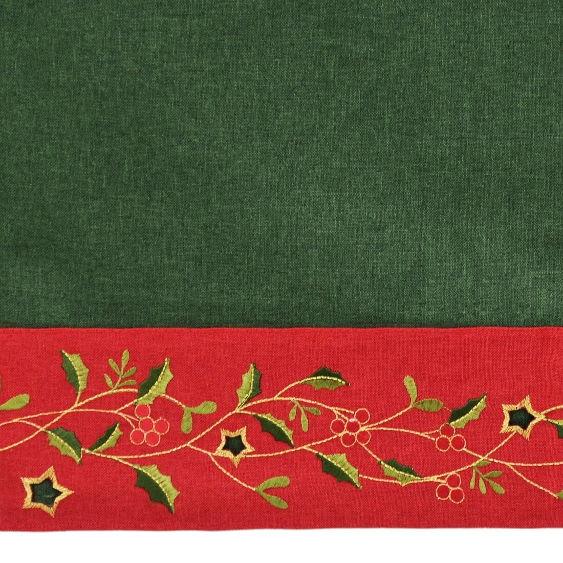 These beautiful fabric tablecloths and napkins have a green centre with red border featuring embroidered holly leaves and berries. The xmas tablecloths are available in 3 sizes – 52×72″ and 52×90″ for rectangular tables and 70″ diameter for round tables. The matching fabric Christmas napkins are 16″ square and come in a pack of 4. Create the perfect setting for your Christmas celebrations!