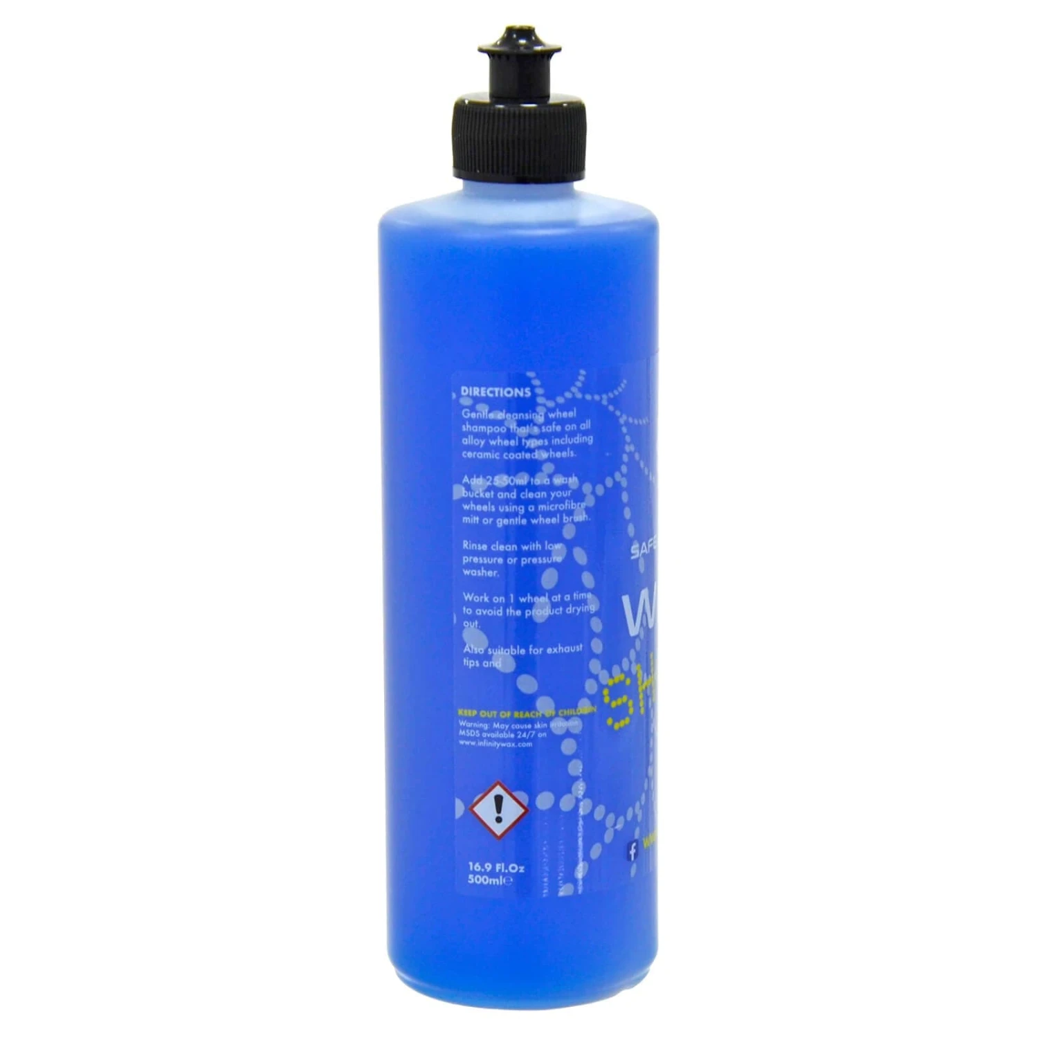 Infinity Wax safe and effective wheel shampoo is a highly concentrated alkaline shampoo, designed specifically to safely break down brake dust and contamination.