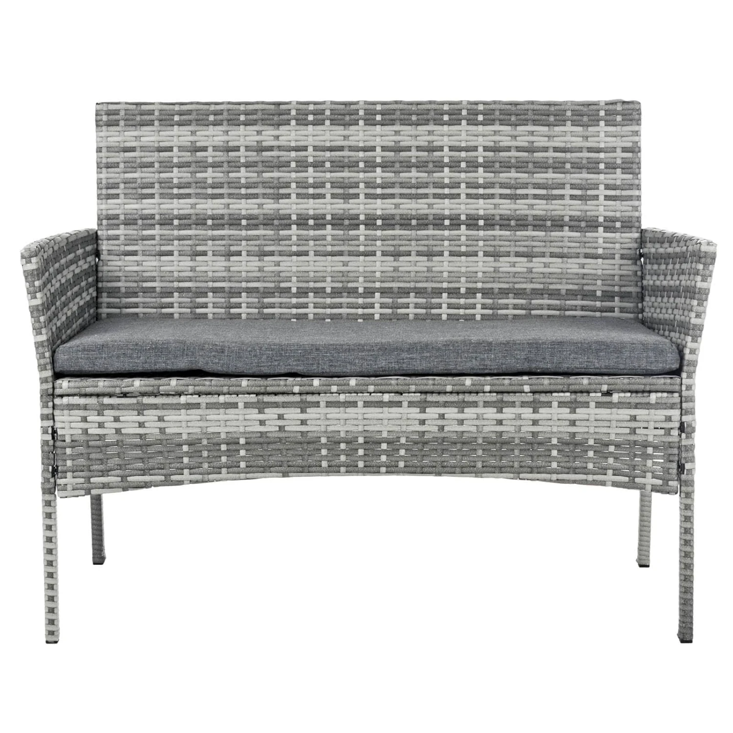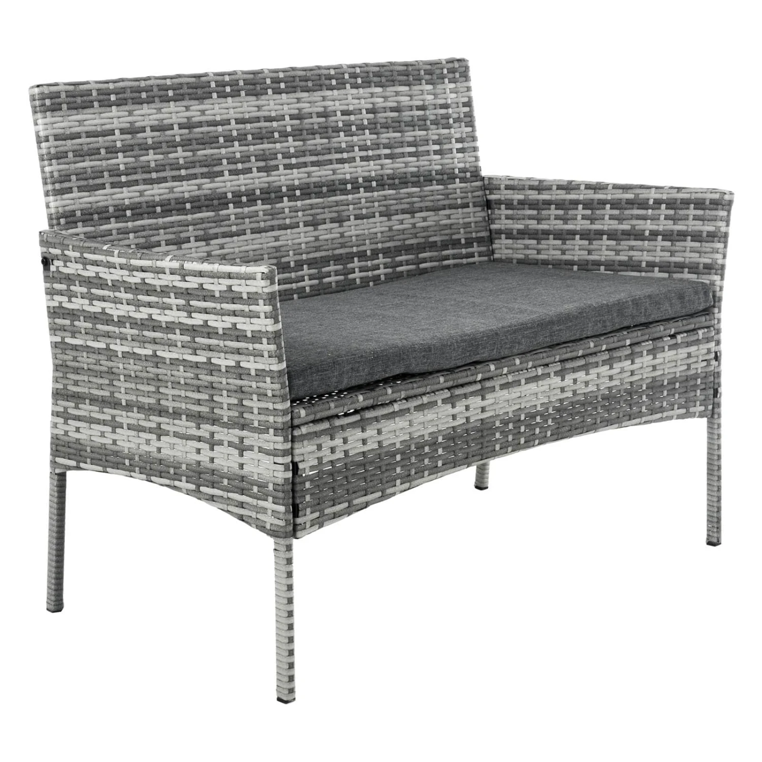 This Spanish inspired Murcia design 2 seater garden bench is stylish and comfortable. Made from wicker style two tone grey polyrattan with a strong steel frame. A matching grey seat pad is included. The perfect place to unwind in your outdoor space.