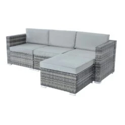 Azuma Arezzo Garden Sofa Set Canopy Grey Rattan Stools Table