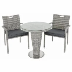 Barletta Garden Dining Set 3 Seater Sofa Grey Rattan Armchairs