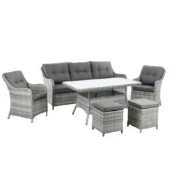 Havana Garden Dining Set Grey Rattan 3 Seater Sofas Table Stools