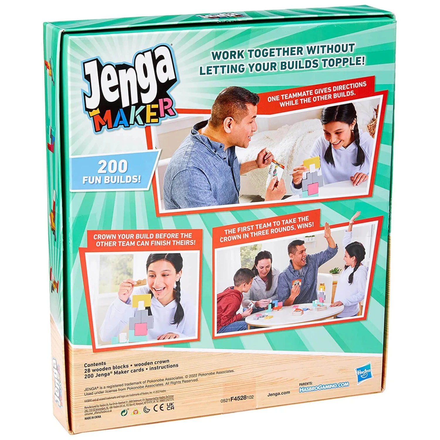 Team up, build off and race to take the crown in the Jenga Maker fun family game.