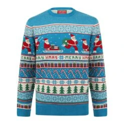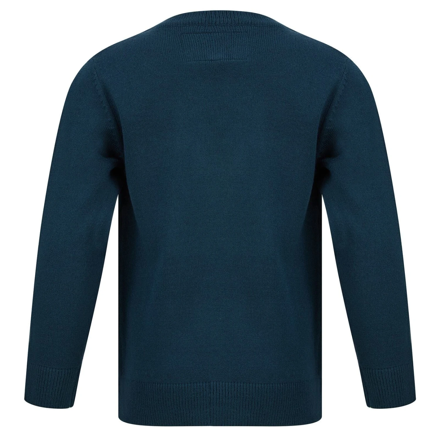 Your little one will love wearing this novelty Christmas jumper over the festive season. The xmas sweater features Rudolph the reindeer with a big smile, wearing a red party hat and Fairisle pattern jumper. The soft knit, crew neck Christmas jumper for children is available in Teal or Ink colours and in child sizes from age 5 to 12. Perfect for family seasonal celebrations, Christmas Jumper Day and a great gift idea!