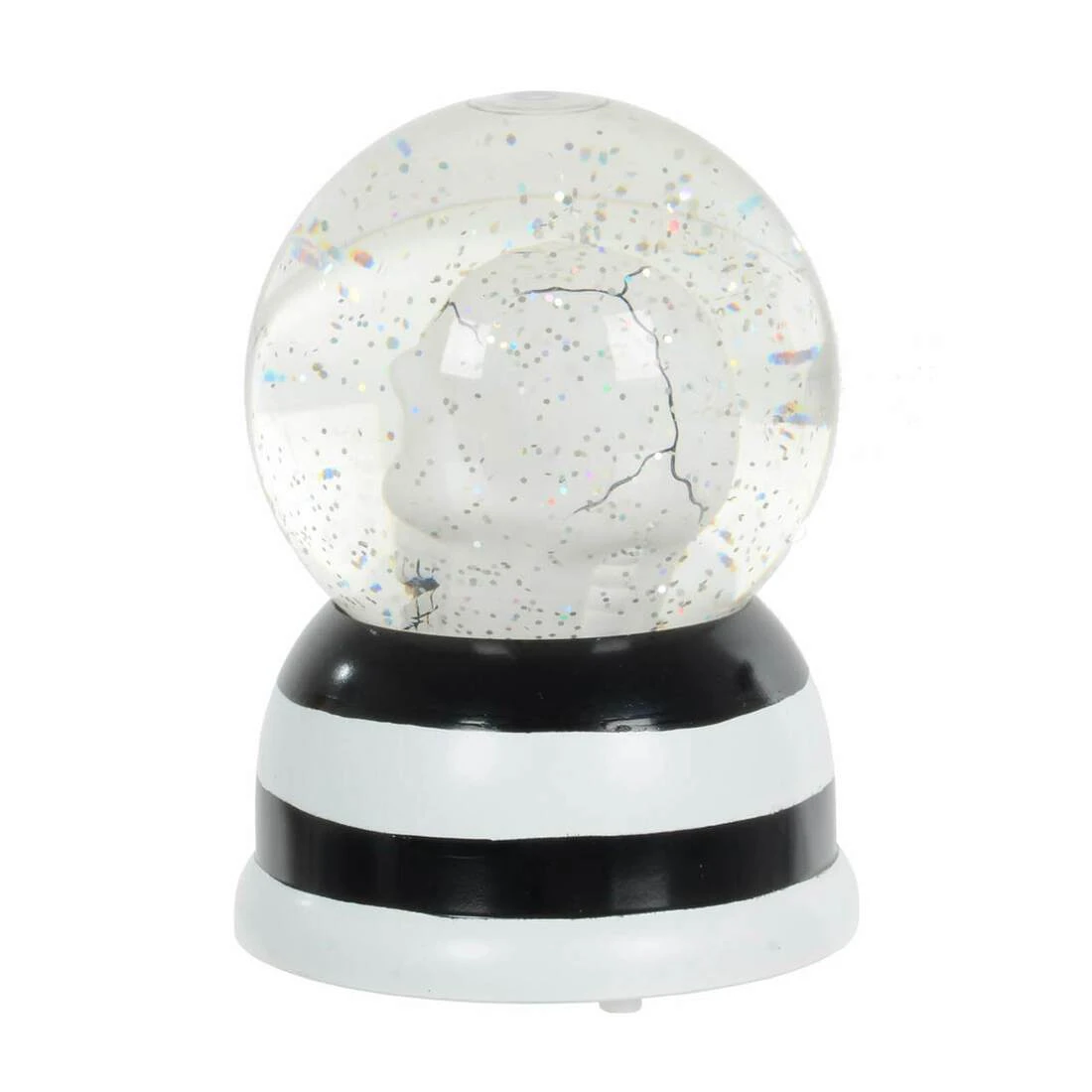 Switch on this Light Up Halloween Decoration and watch as the glitter swirls around the scary skull inside the globe. The warm white LED light at the base lights up the skull and makes the glitter sparkle as it moves. With a black and white base, this eye-catching decoration is the perfect addition to your Halloween party display.