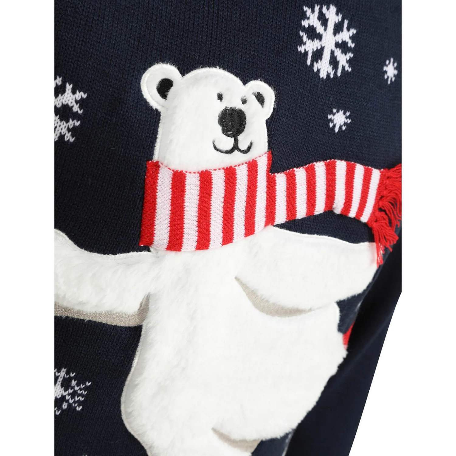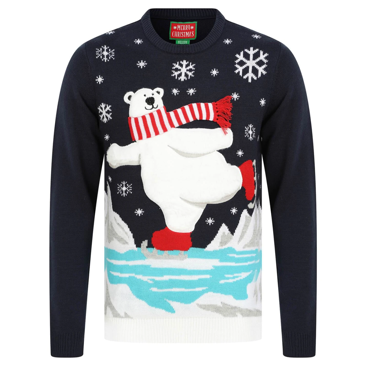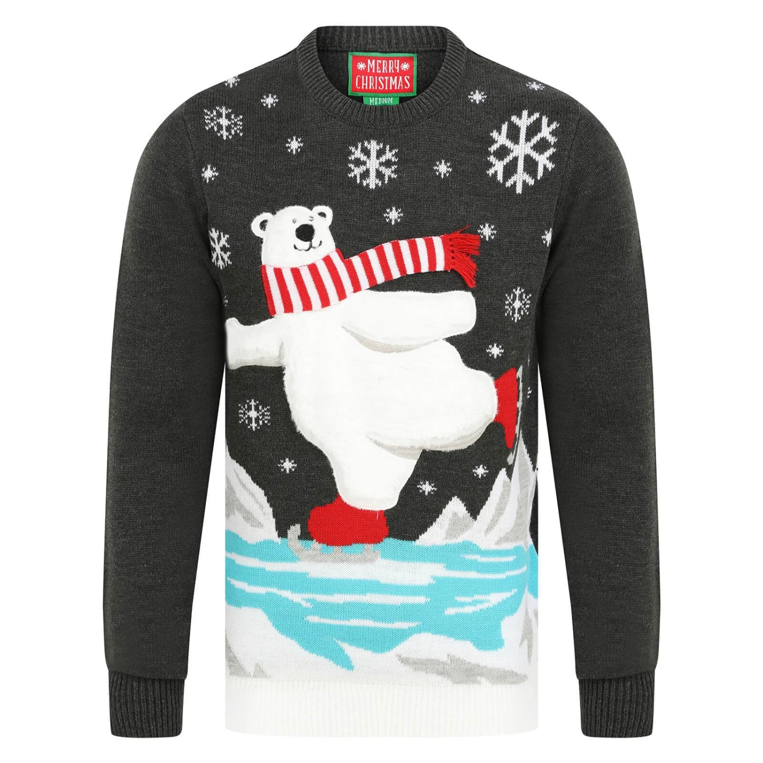 Mens Christmas Jumper Polar Bear Ice Skating With Striped Scarf