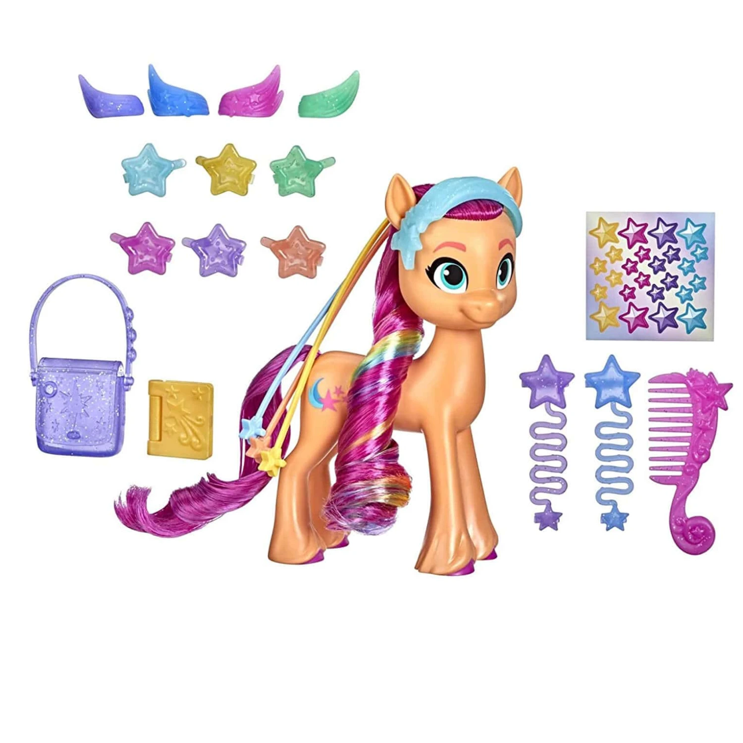 Comes with 17 hair and story accessories. Customise Sunny’s look with the clips, headband and bracelet, place her movie-inspired journal inside her iconic saddle bag, then decorate everything with stickers! A great gift idea for My Little Pony fans and collectors