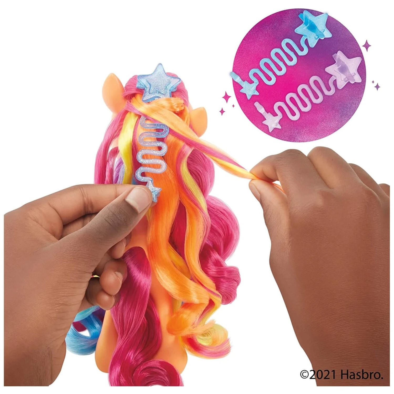 Discover a colourful surprise under her signature braid with Rainbow Reveal Sunny Starscout, inspired by the My Little Pony: A New Generation movie.