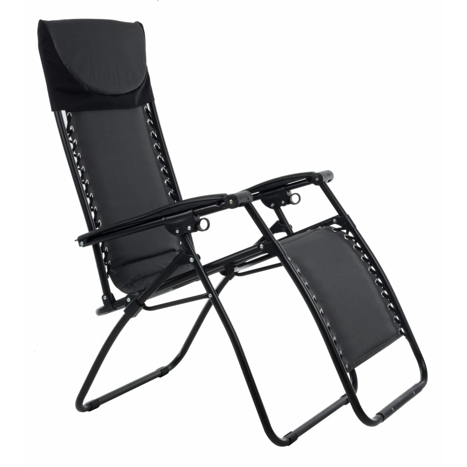This cool relaxer chair can be adjusted effortlessly. Choose any position from sitting upright for a bbq burger and beer to sparked out horizontal soaking up the sun. Simply pull down the loop handles under the arm rests to unlock. Use your weight to smoothly adjust the angle. When you find the perfect position, pull up both loop handles to lock. The removable padded headrest provides a soft pillow for you to grab those forty winks. And remember to slap on the sun cream!