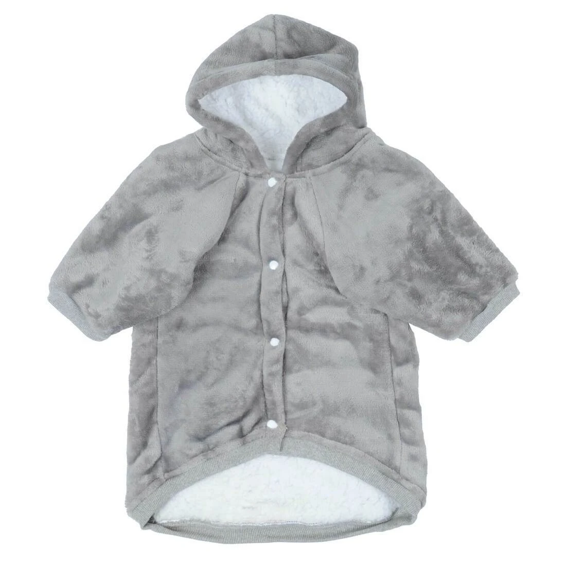 Made from luxuriously soft fleece, this sweatshirt style dog coat is designed for comfort and warmth. One side of the pet jacket is plain colour flannel fleece, the inside is thick warm white sherpa fleece. This pet hoodie top has a large hood, pocket on the back and stretch ribbed cuffs. Available in a range of colours and sizes to fit your precious furball!