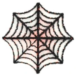 Light Up Spiders Web Black Tinsel Orange LED Decoration 80cm