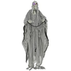 3ft Hanging Skeleton Light Up Eyes White Robe Ghost Decoration
