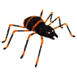 Large Light Up Spider Decoration Black Tinsel Orange LED 90cm