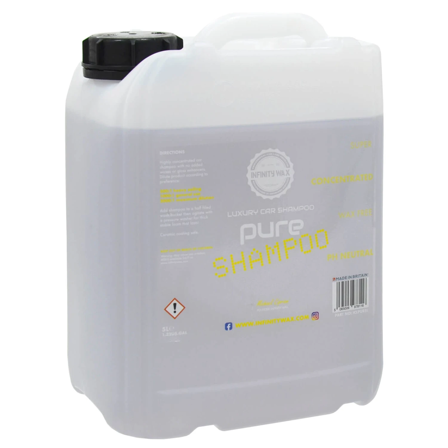 Pure Shampoo from Infinity Wax is an extremely slick and highly concentrated shampoo. It quite simply gives the highest possible performance possible, while also being free of any added waxes, polymers or gloss enhancers. Perfect for ceramic coated vehicles.