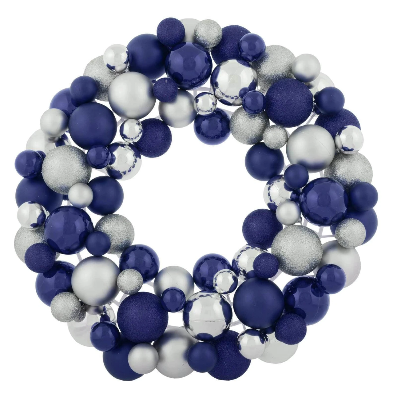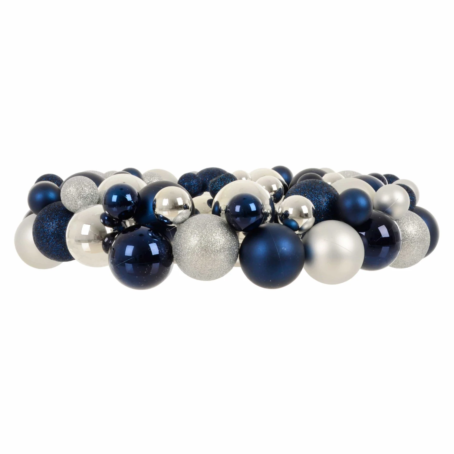 This stunning Christmas bauble wreath from Mr Crimbo is a stylish alternative to traditional wreaths. Each wreath is made up of 4 sizes of shiny, frosted and glitter Christmas baubles, and is perfect for displaying on your front door, wall, or dining table as a festive centrepiece! Choose from gold, silver, red or navy blue.