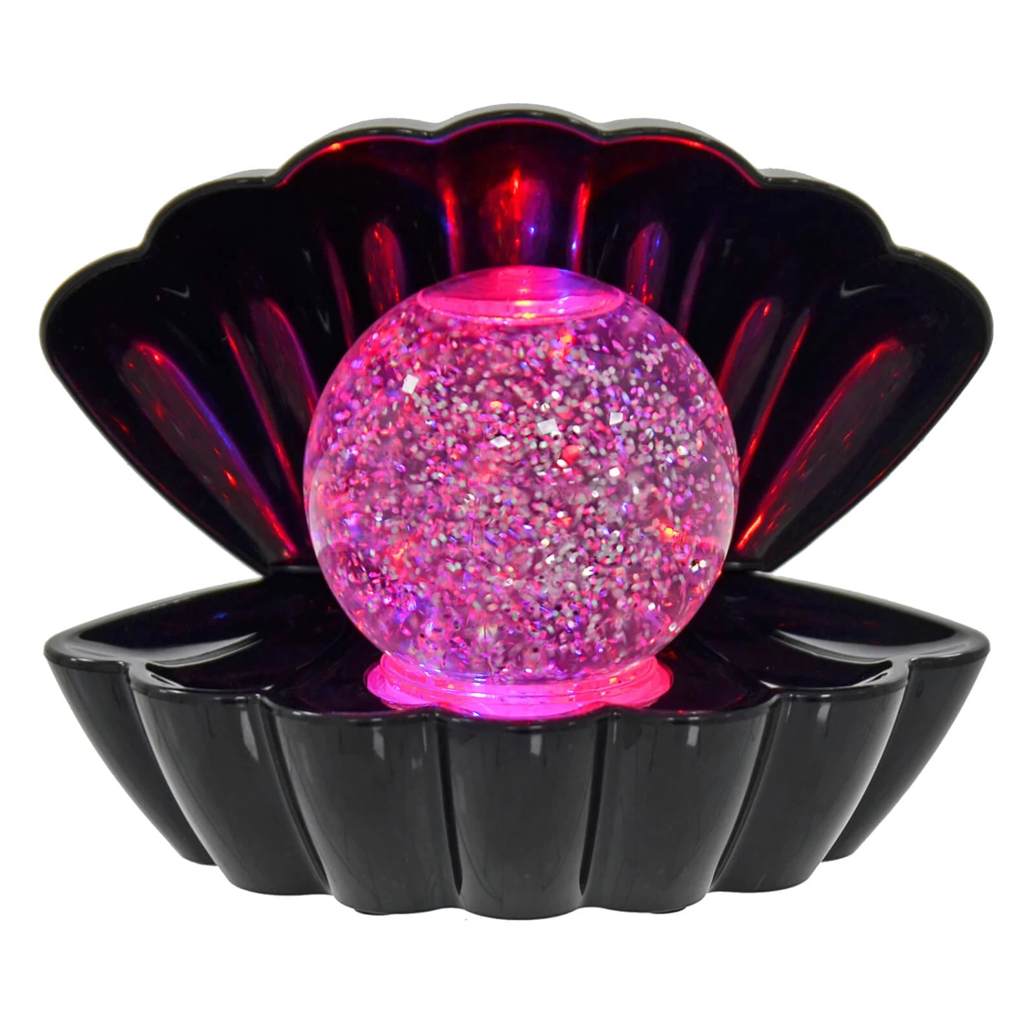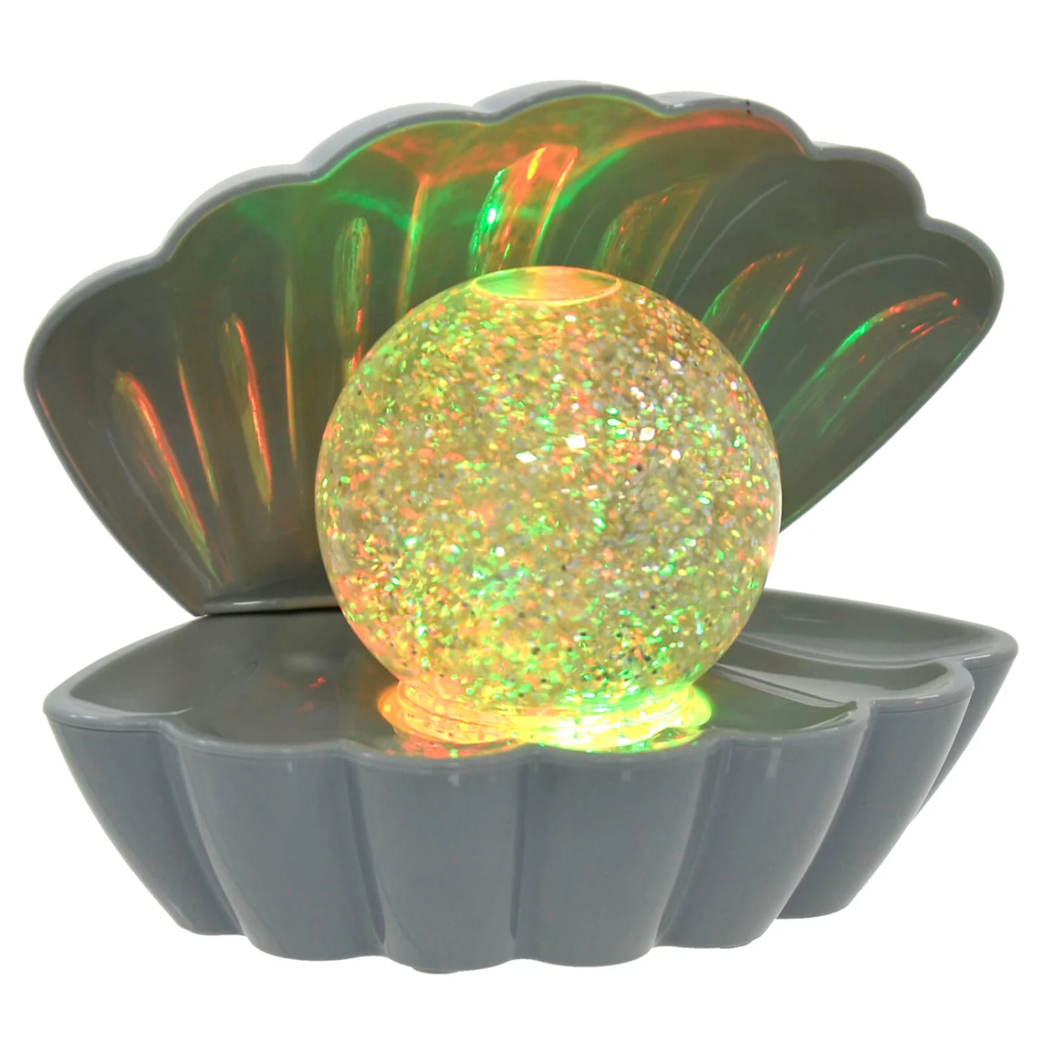 Switch on and watch the water inside the globe move and make the glitter swirl and sparkle in the light. The clam shell has an LED light that changes through 7 different colours. A great way to relax after a long day.