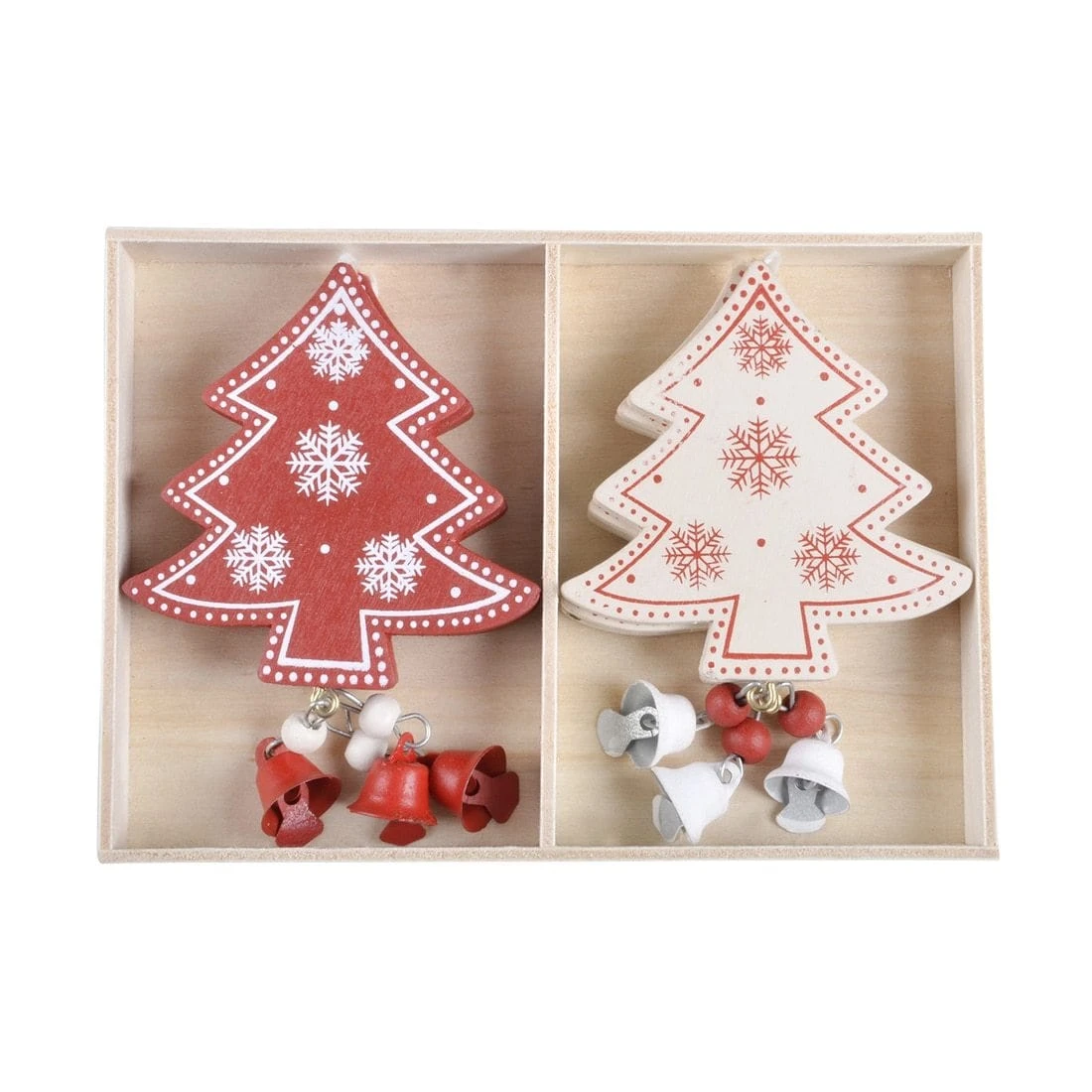 Decorate your home with these wooden Christmas tree shaped hanging ornaments! This set of 6 decorations comes with 3 red and 3 white trees – each styled with a festive painted finish and is presented in a wooden storage box. Mix and match our full range of tree decorations!