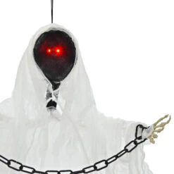 3ft Hanging Skeleton Light Up Eyes White Robe Ghost Decoration
