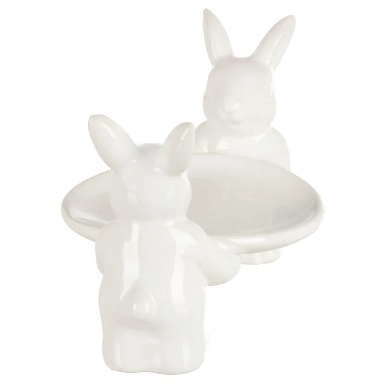 The pair of cute Easter bunnies carry a plate with a diameter of 10cm (4″).